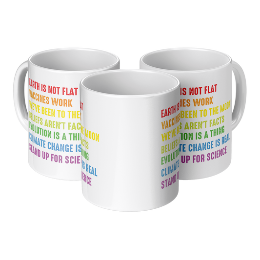 Science Coffee Mug – “Stand Up for Science” Rainbow Quote Cup – Funny Educational Gift for Teachers, Scientists, and Science Lovers