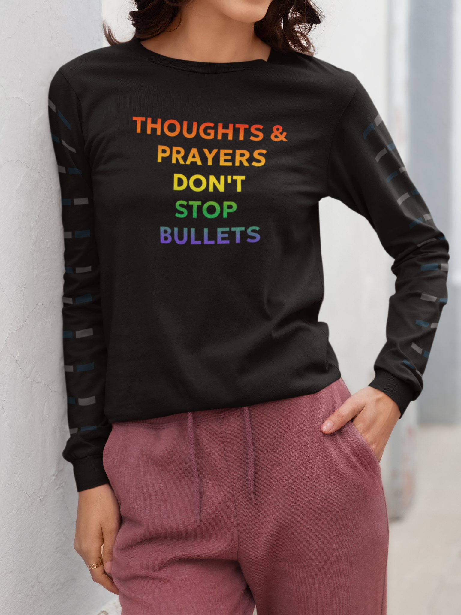 Our Thoughts & Prayers Don't Stop Bullets shirt will help you make a statement about your beliefs in style. Support reforms that will protect our children.